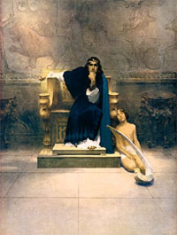 | When I Meditate on Thee in the Night Watches My Soul shall be satisfied as with marrow and fatness; and my mouth shall praise thee with joyful lips: when I remember thee upon my bed and meditate on thee in the night watches. Taylor modeled his harp on a fragment in the British Museum; the bas-relief on the wall in the background is taken from an Assyrian original.